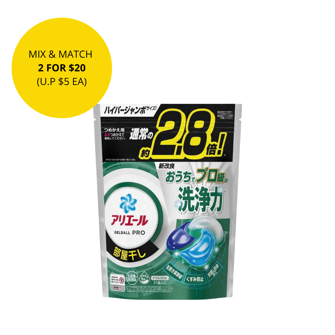 Tackle laundry with confidence—even on rainy days—with ARIEL Gel Ball Pro For Room Drying Hyper. Specially formulated for indoor drying, these Japanese laundry capsules prevent musty odors, fight bacteria, and keep clothes fresh and clean.