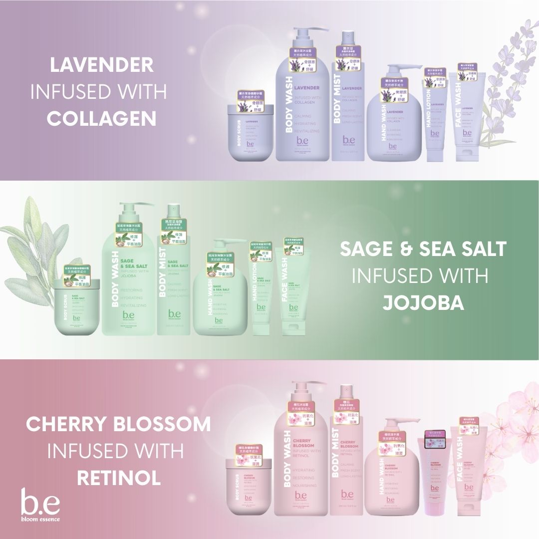 🌸 B.E Bloom Essence Face Wash Collection 120ml | Lavender (Collagen), Sage & Sea Salt (Jojoba), Cherry Blossom (Retinol)