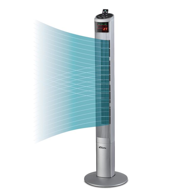 The PowerPac Tower Fan 46" with Oscillation and Remote Control PPTF460 is attractive in design with a sleek appearance. Minimal floor space is used as it fits in tight spaces & small corners and blends in discreetly with its surroundings.