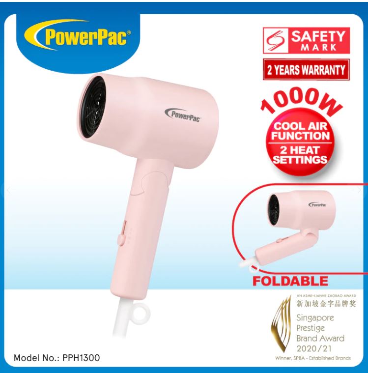 POWERPAC Hair Dryer with 2 Speed & Foldable 1000wPPH1300