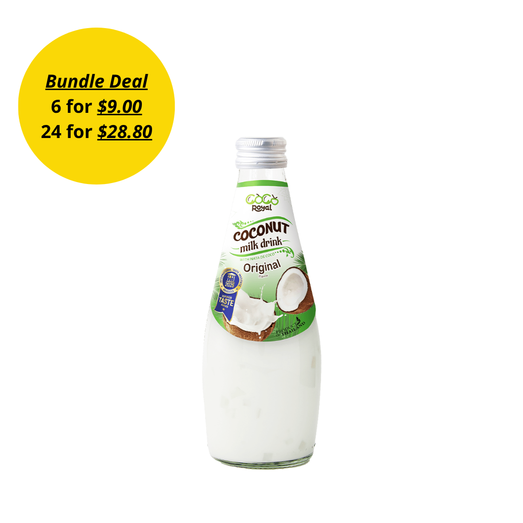 Savor the rich and creamy taste of COCO ROYAL Coconut Milk with Nata De Coco (290ml) – a refreshing tropical drink that combines the smooth goodness of coconut milk with the chewy, jelly-like texture of nata de coco. Each sip is a delightful mix of creaminess and chewiness, making it a fun and satisfying beverage for all ages.